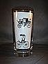 Circa 1950's. I believe these were made by Libbey Glass. I put white paper in the glass to show the coaches. There are 7. The gold on the lip is in good condition. Over all condition is very good to excellent. 8 1/8 " tall. There are 10 available.