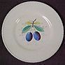 Westmoreland Fruit Beaded Edge with painted Plum on 6" bread and butter plate. Produced from late 1940's to 1950's, in excellent condition. We have more of this pattern listed elsewhere. 5 are available.